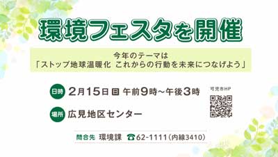 2月15日(日)に広見地区センターで行われる環境フェスタについて紹介します。