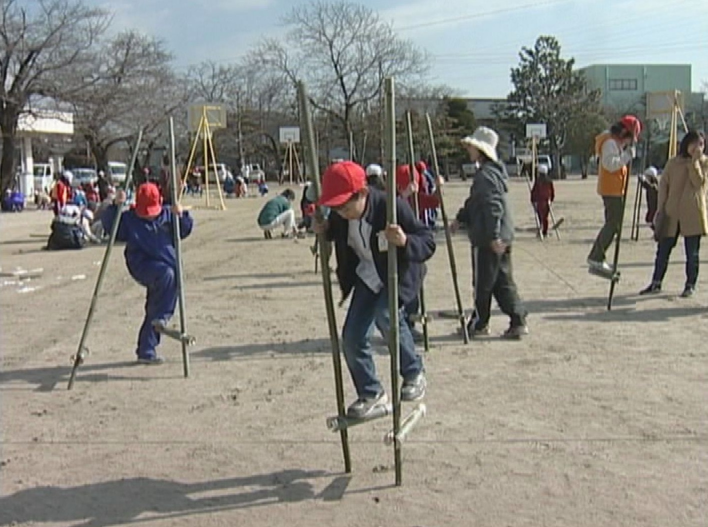 2004年2月 今渡南小で竹馬づくり