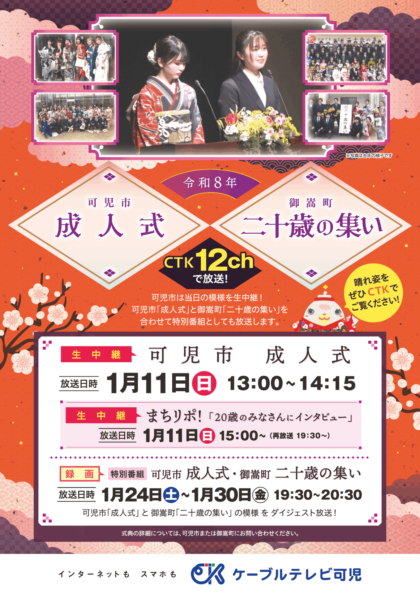 20歳の皆さんの晴れ姿をぜひケーブルテレビ可児でご覧ください!